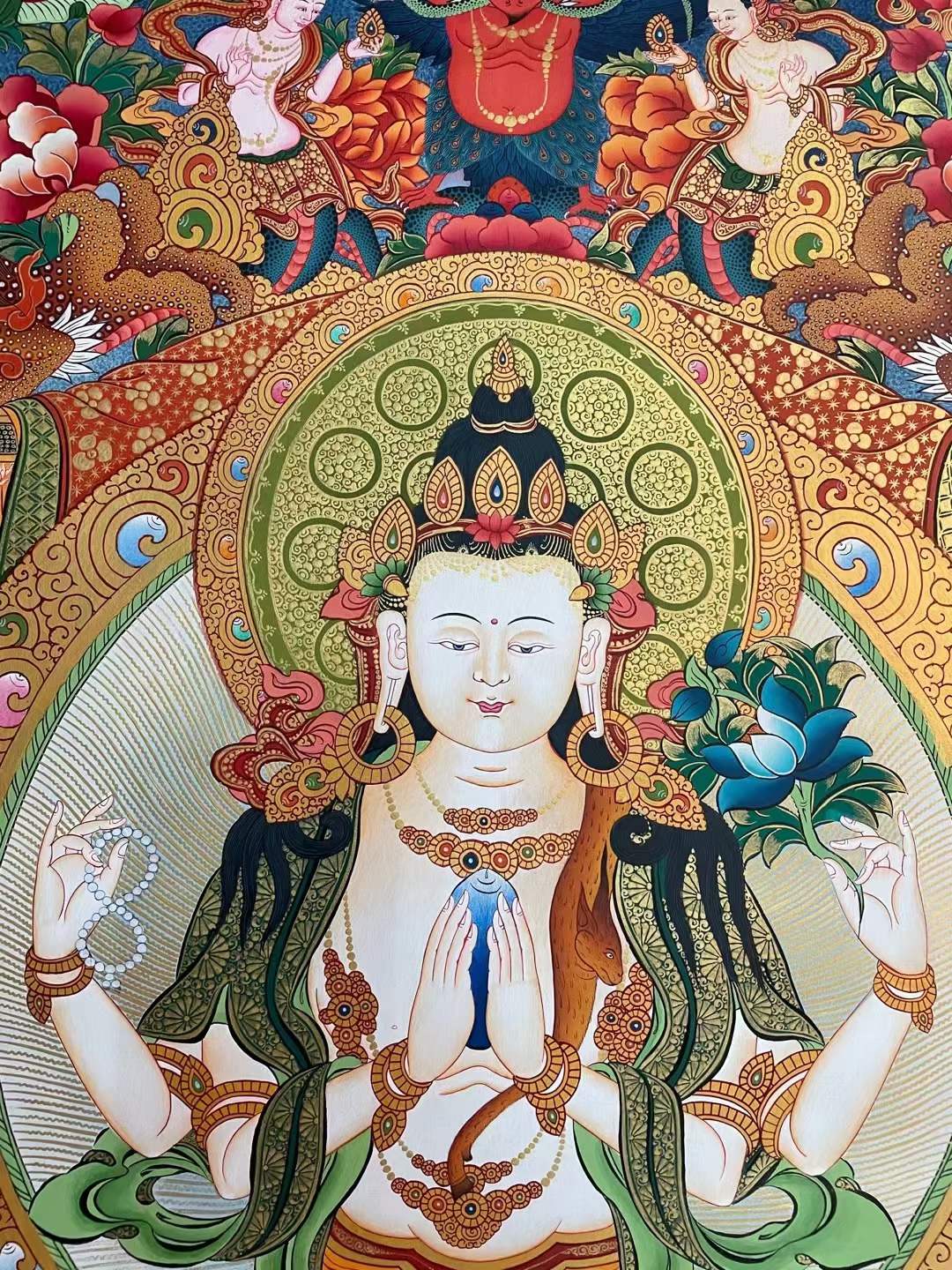 接下来请朋友们欣赏一组沃唐卡编号为157-116186的四臂观音唐卡: