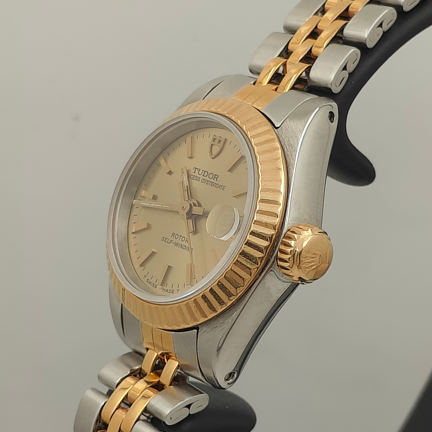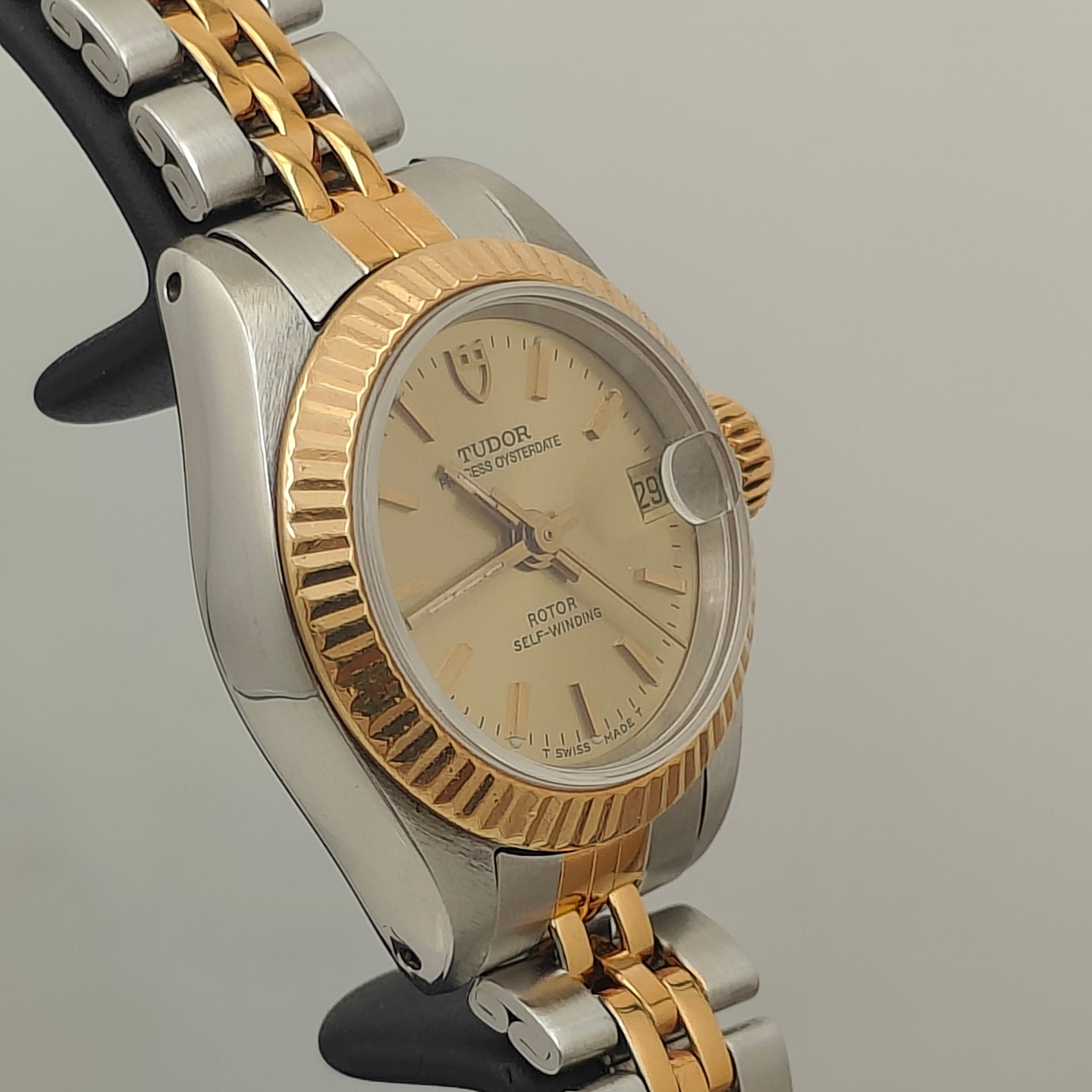 帝舵公主系列二手正品女表,瑞士原产机械机芯,精准走时经久耐用!间金钢链材质融合金属光泽与复古优雅,单折叠扣设计佩戴舒适便捷。表壳直径23mm,厚度8.8mm,小巧圆润贴合女性手腕;蓝宝石表镜通透耐磨,夜光功能让读时不受光线限制。100米防水深度,应对洗手、淋雨等日常场景毫无压力。三针指针搭配日历显示,功能实用又不失简约美感。表壳与表带均采用金属材质,质感高级;9成新以上成色,附店铺保修,性价比极高。这款腕表风格休闲百搭,适合职场、聚会等多种场合,彰显女性独立自信的魅力。无论是自用提升气质,还是作为礼物传递心意,都是不容错过的选择!