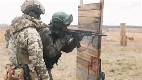 ▲俄罗斯教官在训练朝鲜士兵使用AK-12打CQB战斗