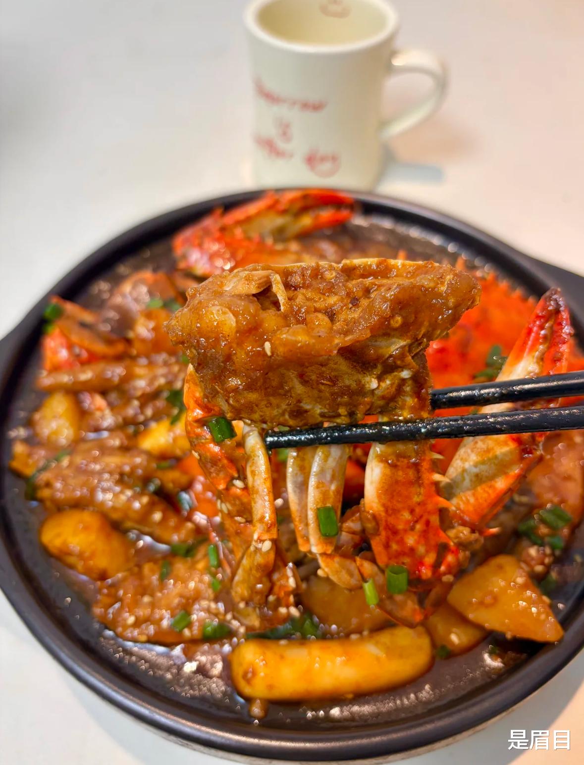 1. 将螃蟹刷洗干净,去掉肚脐,揭开蟹盖,去除蟹胃、蟹腮和蟹心。将蟹身一分为四,蟹钳用刀背拍裂。在蟹块切面处均匀裹上一层薄淀粉,防止蟹黄流失。锅中放油,油热后放入蟹块,蟹壳朝下煎至两面金黄,捞出备用。2. 鸡爪剪去指甲,对半剁开。冷水下锅,加入姜片和料酒,水开后撇去浮沫,捞出用凉水冲洗干净。换一锅清水,再次放入鸡爪,加料酒和姜片煮5-10分钟,捞出备用,鸡爪汤留用。3. 鲜虾去虾线,虾背划开。锅中放少许油,将虾煎至两面金黄,盛出备用。4. 锅中热油,放入葱、姜、蒜炒香,加入豆瓣酱和黄豆酱,小火炒出红油。接着放入干辣椒、八角、桂皮、香叶、花椒等香料,继续翻炒出香味。加入1勺白糖、2勺生抽、1勺蚝油,翻炒均匀后倒入半罐啤酒,搅匀备用。5. 将鸡爪和调好的酱汁放入锅中,加水(或鸡爪汤)没过食材,中火煮10分钟。然后加入土豆条、玉米段、藕片等配菜,继续煮至配菜变软。接着放入炸好的蟹块和鲜虾,大火煮至蟹肉熟透。最后加入年糕条,煮几分钟至年糕变软,吸收汤汁。6. 根据个人口味加入适量盐和糖调味,撒上葱花即可出锅。蟹壳可以摆盘装饰,既美观又增添风味。