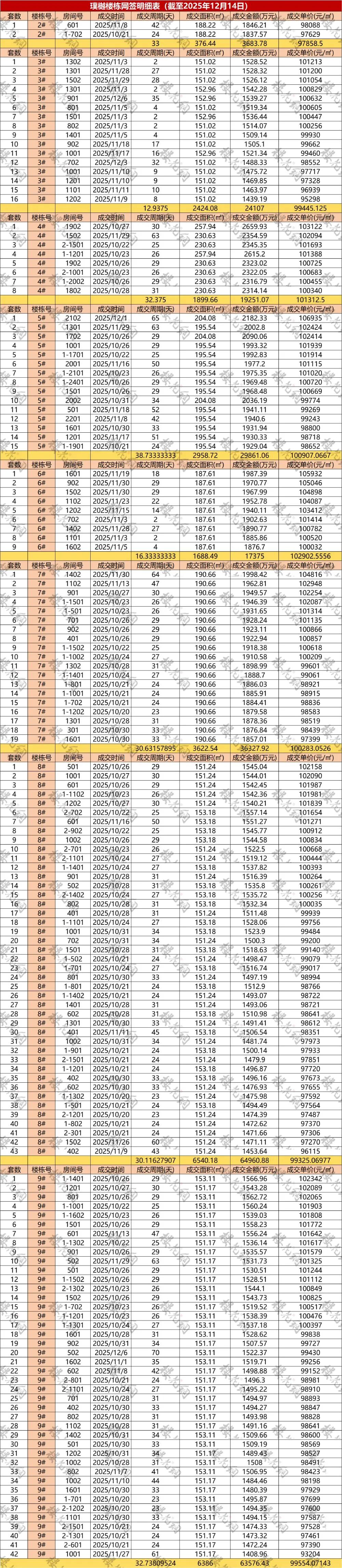 3#,单套面积151平米,成交16套,均价9.94万元/平米,最高价为1302室,单价10.12万元/平米;