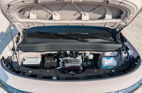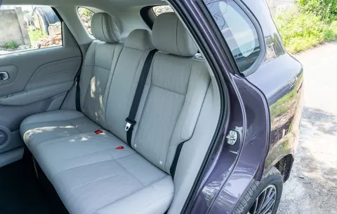 空间表现上,零跑B10也毫不逊色。2735mm的轴距营造出87.4%的得房率,后排腿部空间达1045mm左右,三个成年人落座,彼此间仍有较为充裕的空间,不会觉得过于局促。前排座椅可180°放平,后排座椅支持6:4比例放倒,露营时铺上床垫就能休息,拉载婴儿车、轮椅等大件物品也较为方便。而且,副驾设有6个拓展孔位,方便安装桌板、挂钩等,进一步拓展了使用场景,实 用性值得肯定。