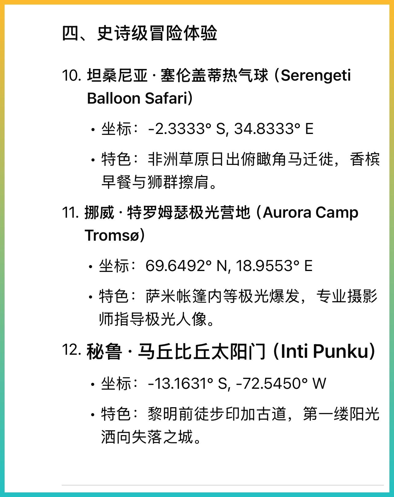 ✅ 季节限定:想看极光,10-3月别错过;薰衣草田6-7月最旺;秋冬适合冲欧洲小镇/极光营地/南半球秘境。