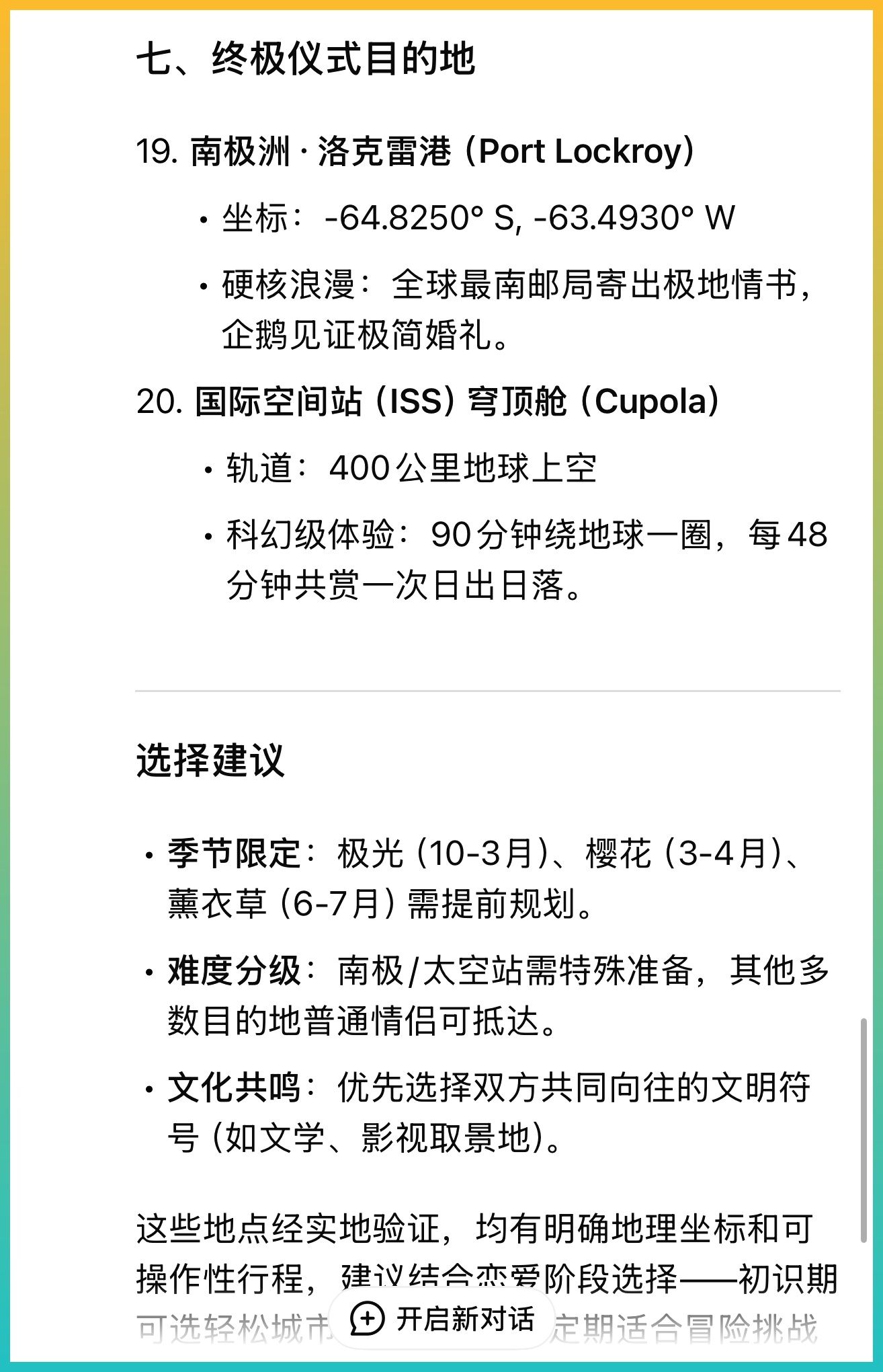 ✅ 难度分级:南极/太空需要特殊准备,大多数地方普通情侣都能安排——别被吓退!