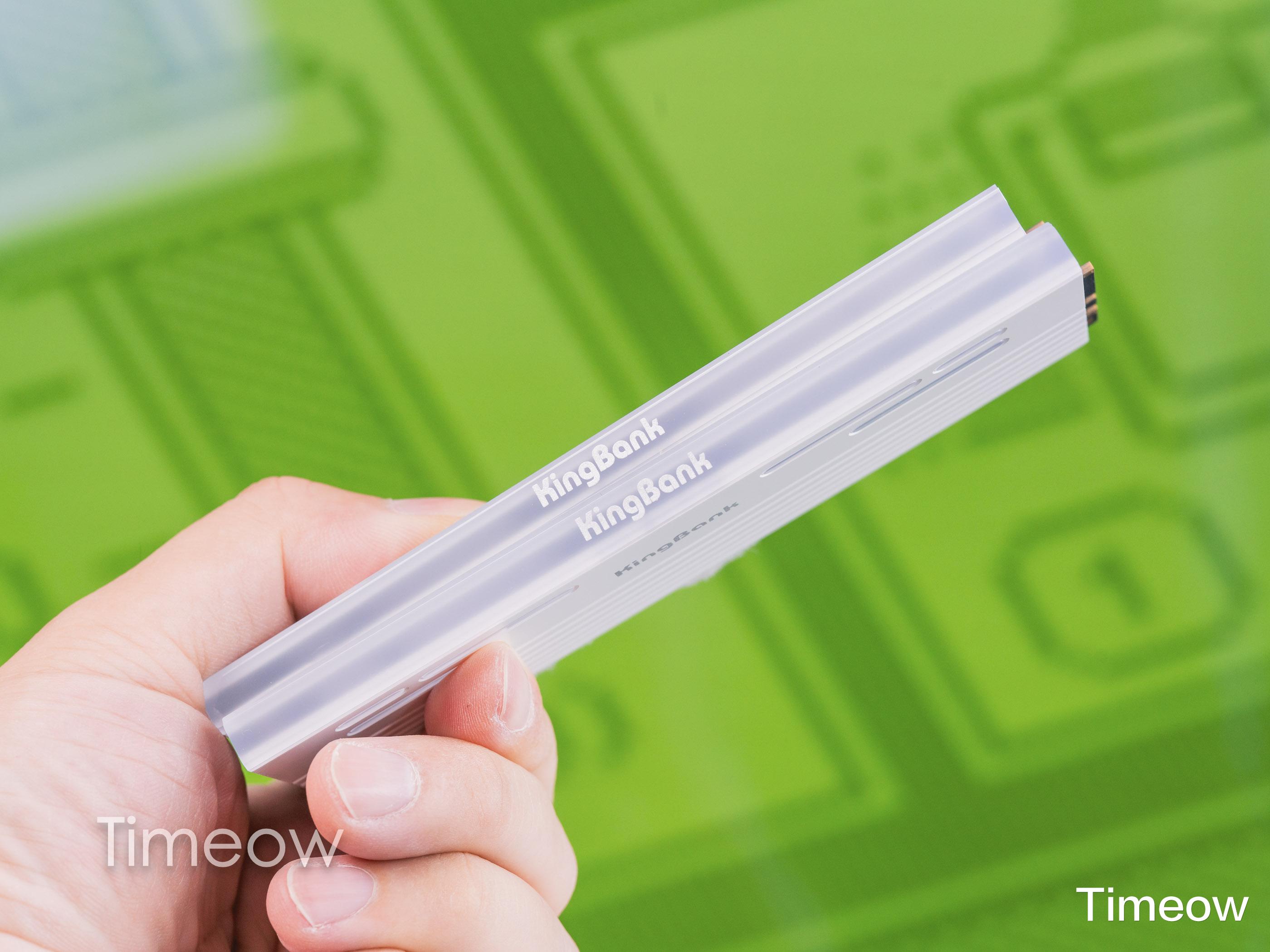 从下方来看,它的用料还挺扎实,厚实的10层PCB保证了更耐久的可插拔性和更宽松的电气性能。同时,外壳和PCB、元器件、内存颗粒之间还配备了整整齐齐的工业级导热材料,进一步保证了散热。