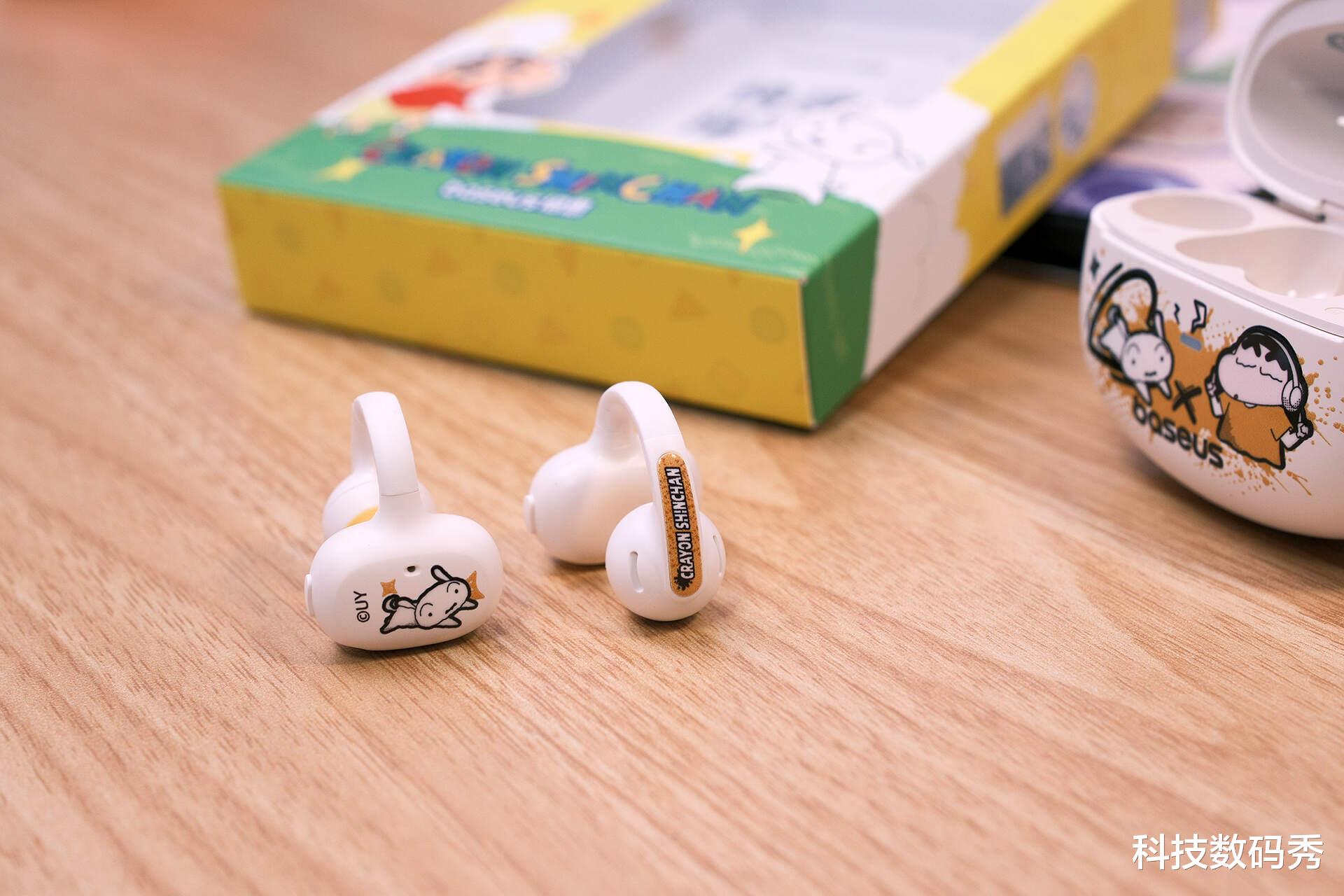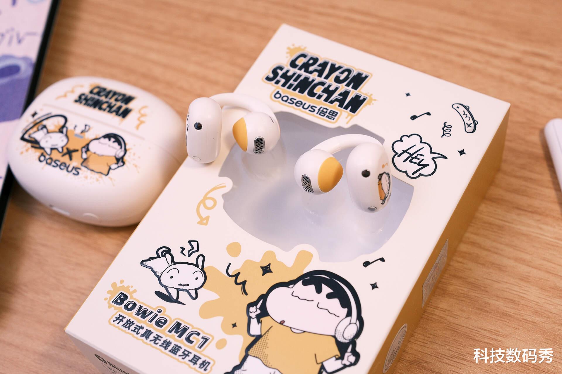 第二款产品,倍思BC1耳夹式蓝牙耳机蜡笔小新联名款,先说优点,音质非常好尤其是低音,真的是让我没想到,129元的音质真的比我之前测评过的四五百的还要好听,12mm大动圈,纤维生物振膜,最大音量90dBA,通话也清晰,四麦克风AI降噪通话并且支持逆向传声防漏音,佩戴相当舒服,5.3克的重量,配合倍思自研C形云感弧,3D微曲贴合设计+三点支撑结构,能够更平均的分散耳部压力,真正做到无感佩戴。