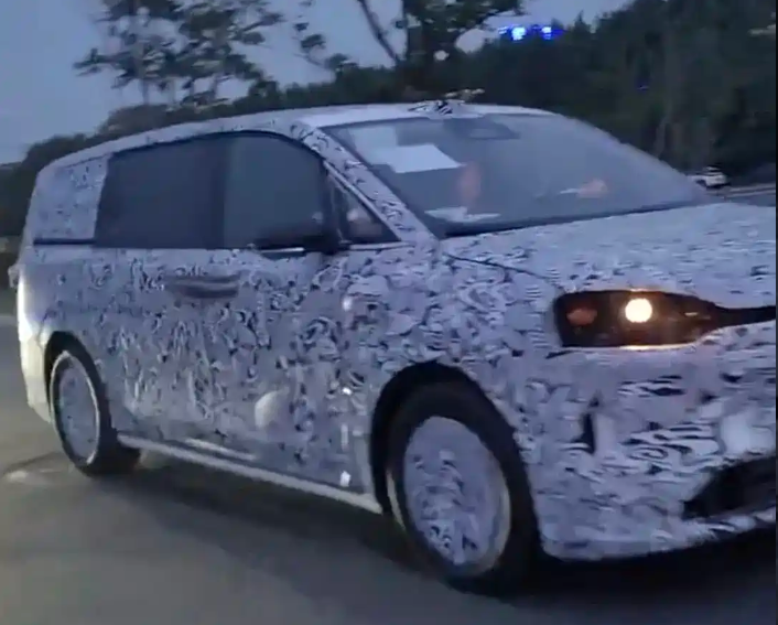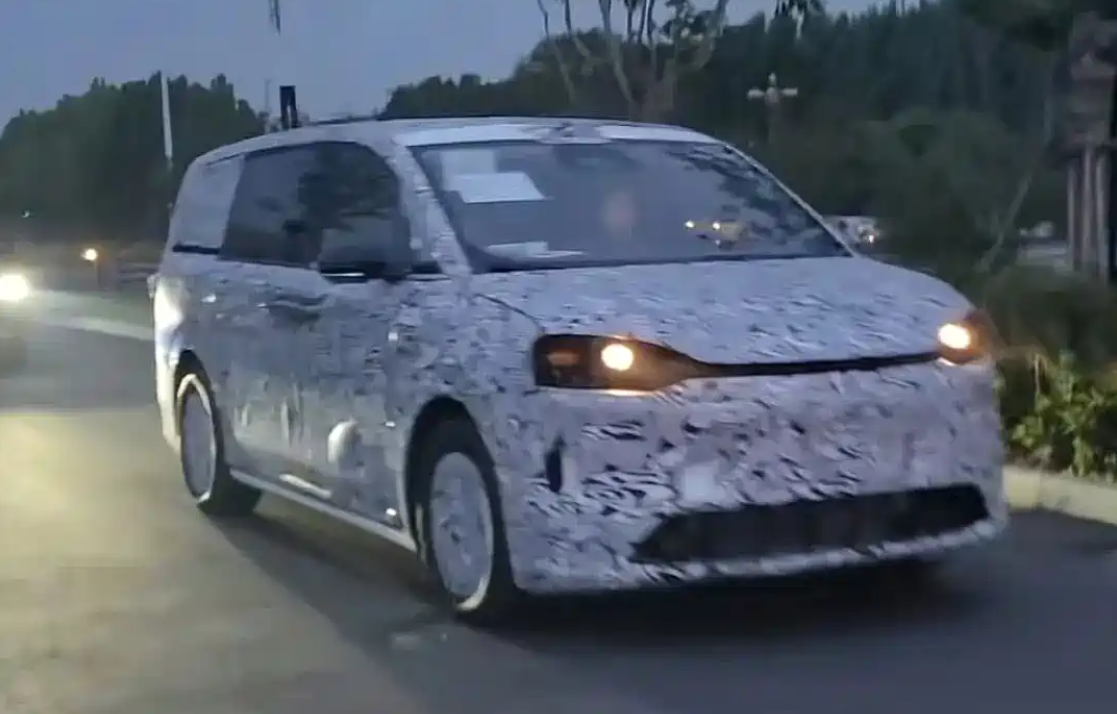 外观方面,从曝光的谍照来看,新车前脸采用新能源车常见的封闭式设计,大灯组的样式还没有最终定型,但可以看出有贯穿式灯带衔接,灯组下方的通风口造型狭窄,前包围底部配备了梯形进气口,风挡玻璃顶端配备了激光雷达。新车侧面配备了侧滑门,门把手为传统样式,尾部造型厚重饱满,后车窗的造型方正,在车顶配备了扰流板。