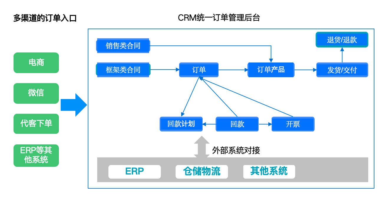 系统无缝集成:与ERP、仓储物流、财务等系统对接,订单生成后自动同步至各系统,订单状态实时回传CRM,实现“订单 - 生产 - 交付”全链路可视。