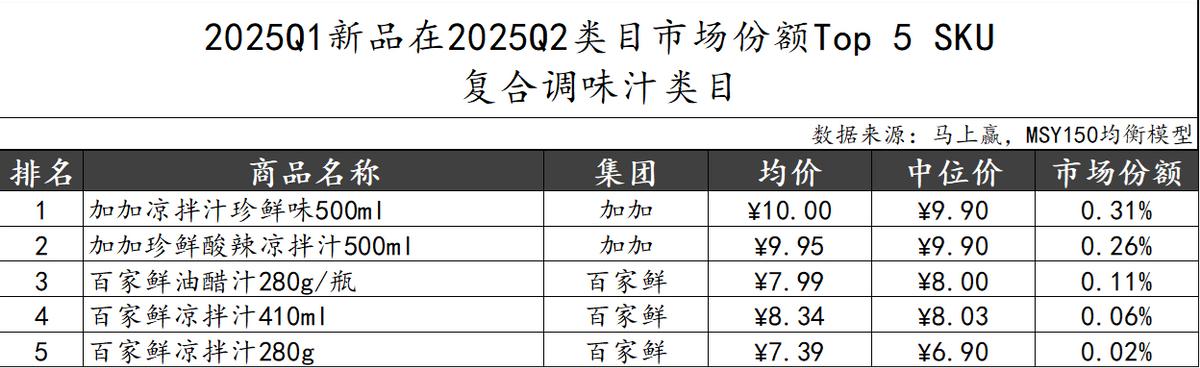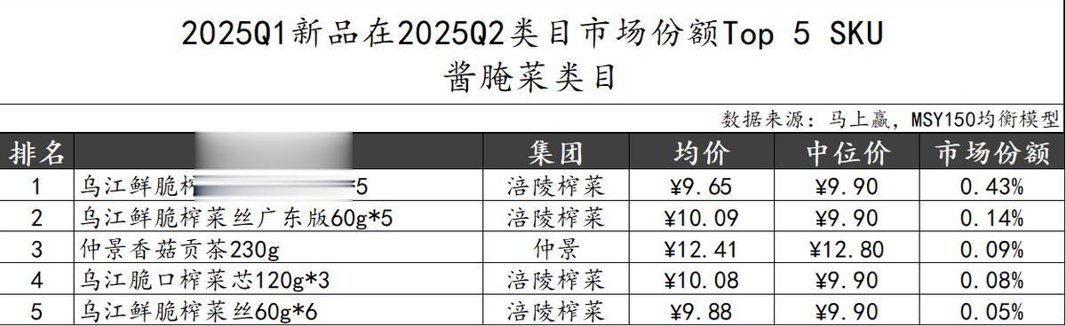 以下是上一季度(2025Q1)上市的新品,在本季度(2025Q2)本类目中市场份额前五的SKU,敬请参考: