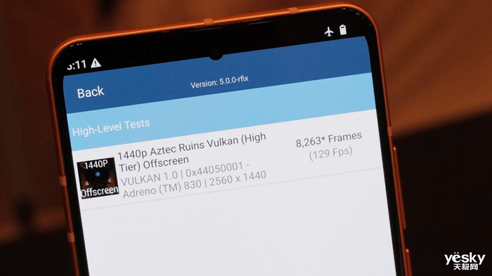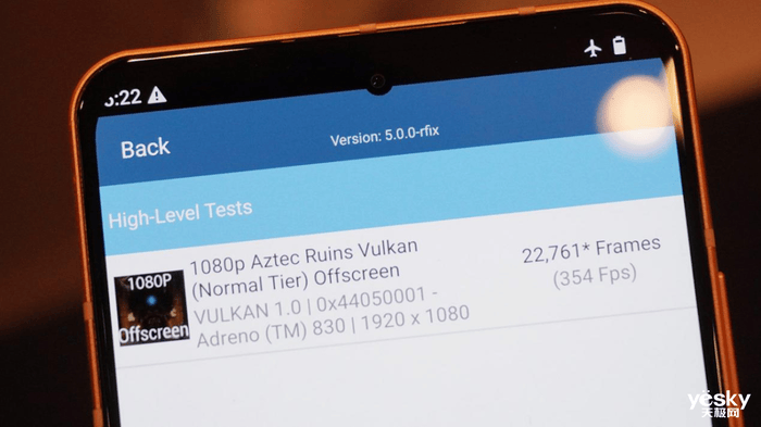 GPU性能测试方面,GFXBench Aztec Ruins Vulkan 1080P与1440P离屏项目成绩分别为354FPS、129FPS。