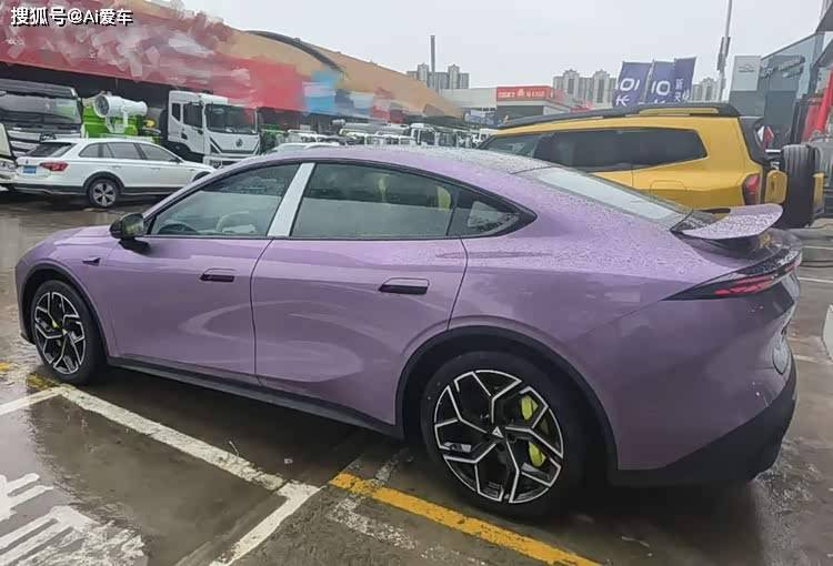 外观设计延续了家族风格,但细节做了不少调整。前脸是分体式大灯,上下两层结构配合熏黑前铲和三角形导流槽,运动感很明确。侧面是标准的溜背轿跑造型,轮毂尺寸不小,内部能看到浅绿色的刹车卡钳。尾部最抓眼球的是那个电动升降尾翼,贯穿式尾灯形成小鸭尾造型,后包围用了中置领航灯分割出的双区扩散器,整体视觉效果挺战斗的。