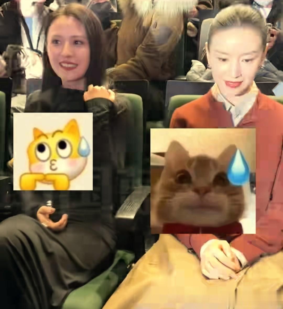 董洁刚坐下突然被人招呼,可能没反应过来,她扭头看了几眼旁边的热依扎,表情有些僵,热依扎一脸礼貌的微笑,等着董洁的反馈,董洁显然是不认识。