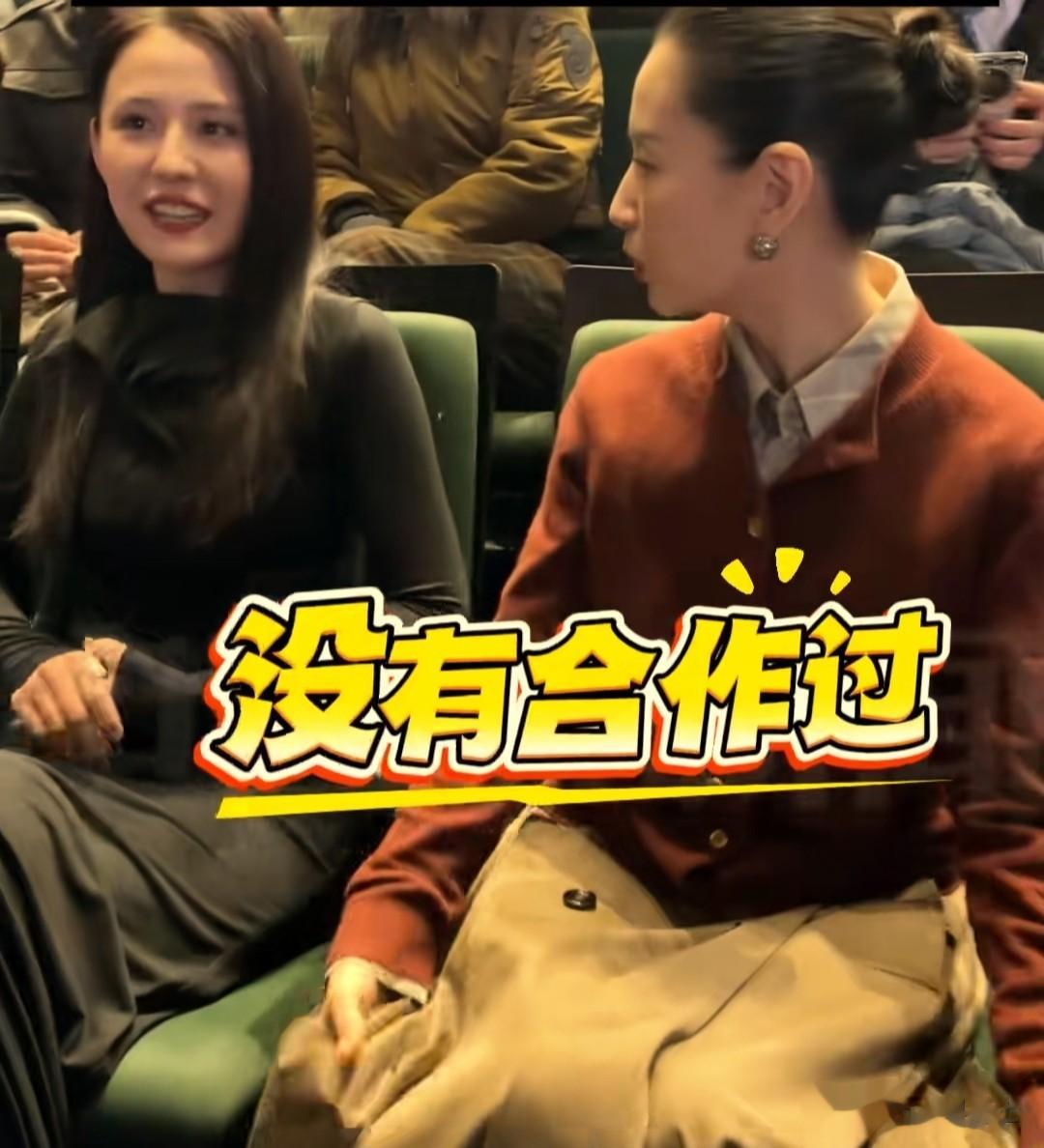 然后董洁又扭头瞅热依扎,热依扎也看着董洁,两人的表情都很抓马,董洁酝酿了一会儿,礼貌的说:“没有合作过。”
