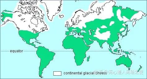 末次冰期的地球,白色部分都是冰川甚至冰盖