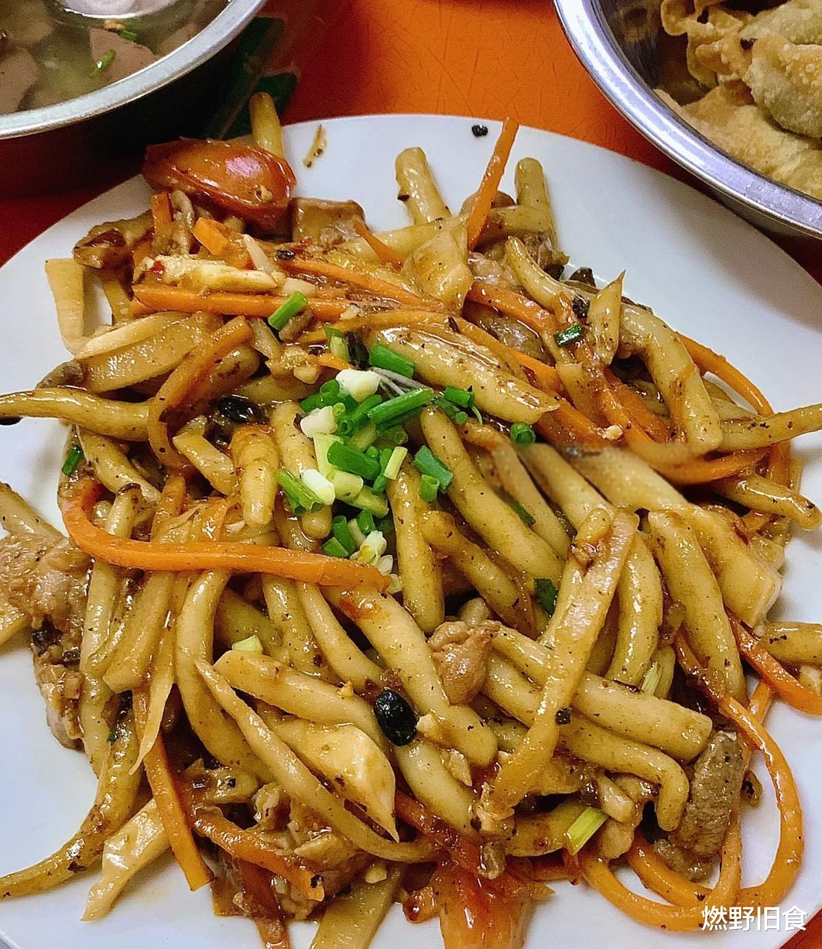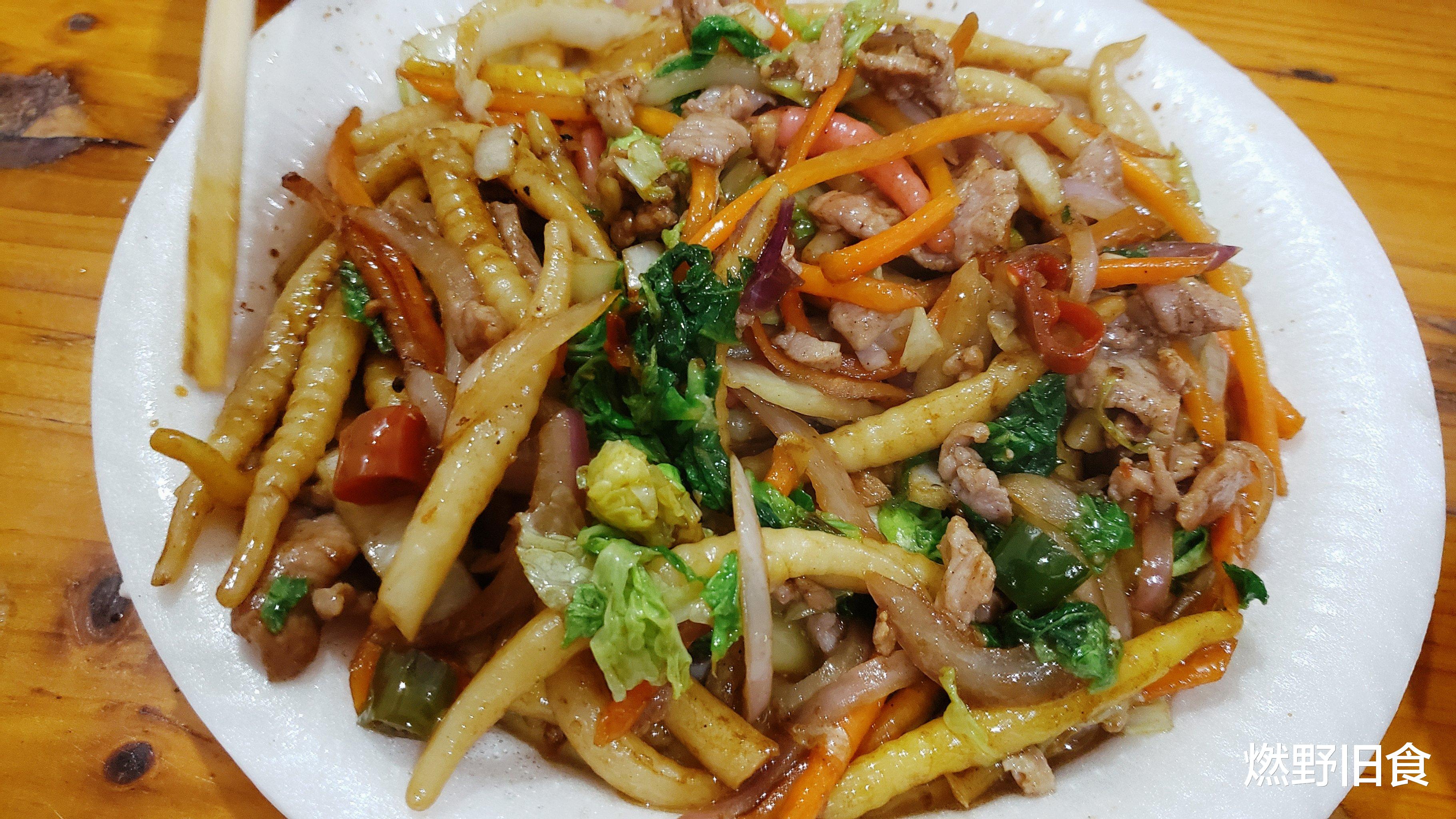 炒粉虫时,会搭配上猪肉丝、青红椒丝、洋葱丝等一起爆炒。粉虫口感软糯有嚼劲,淋上麻油、苏梅酱,再浇上一勺辣椒酱,吃起来香辣可口。