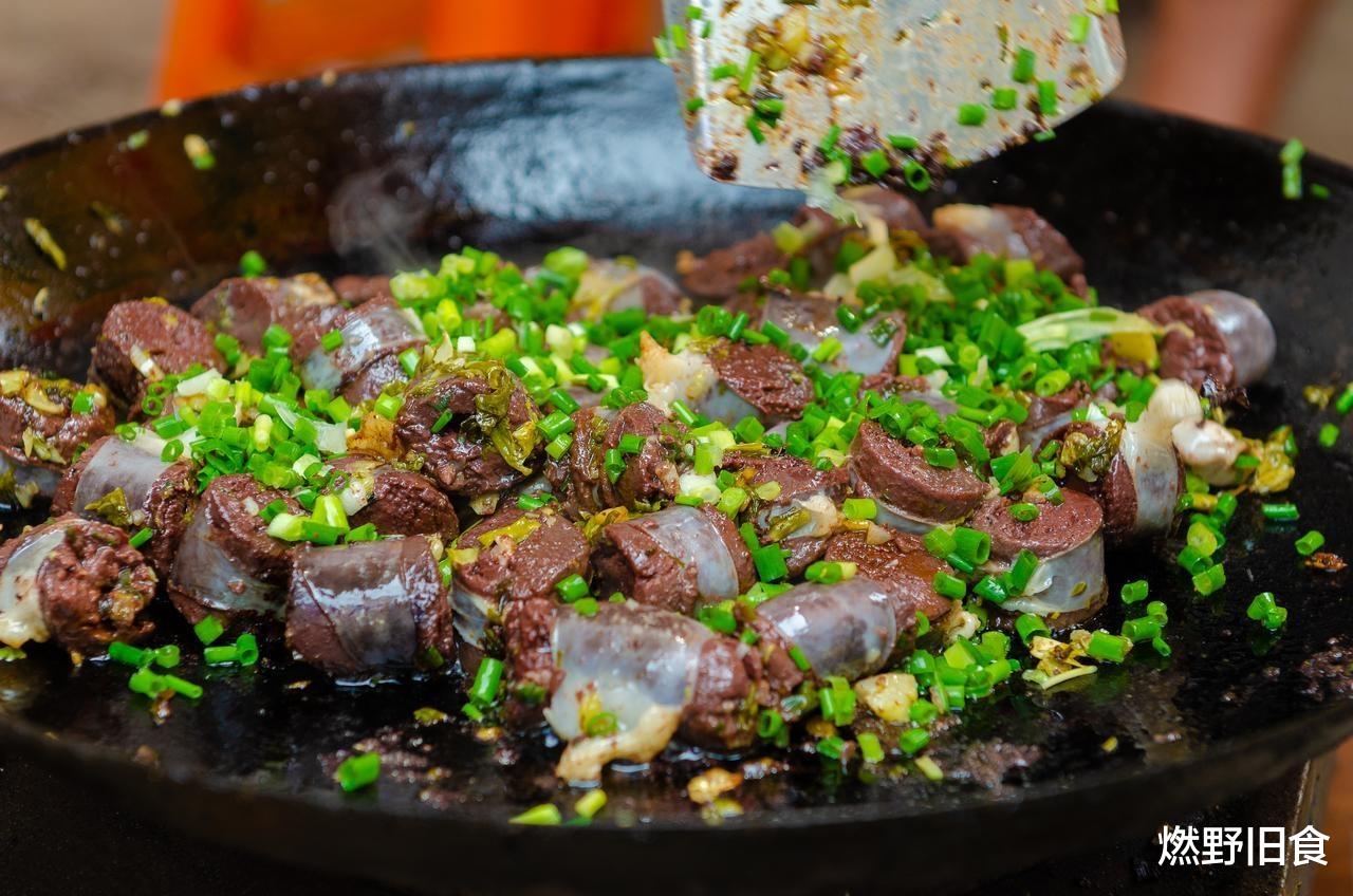 蒸煮后的血肠香气十足,再加油煎制,蘸上用酱油、醋配成的蘸料,一口下去香极了。