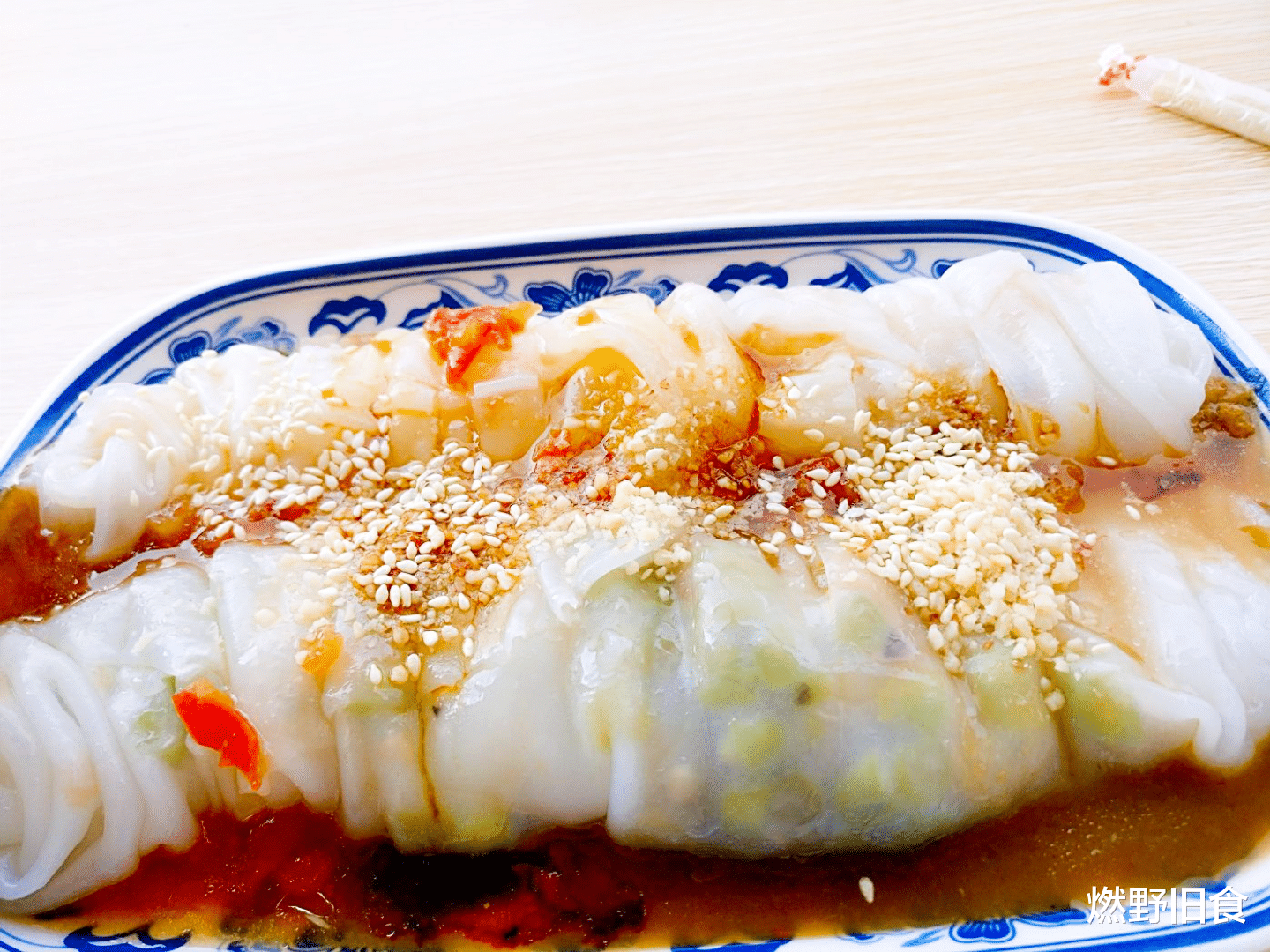 它的做法和越南小卷粉很像,米皮薄如蝉翼,裹着满满的馅料,有猪肉末、木耳、葱花、胡萝卜丝等。吃的时候淋上广西独有的黄皮酱、番茄汁等酱料。