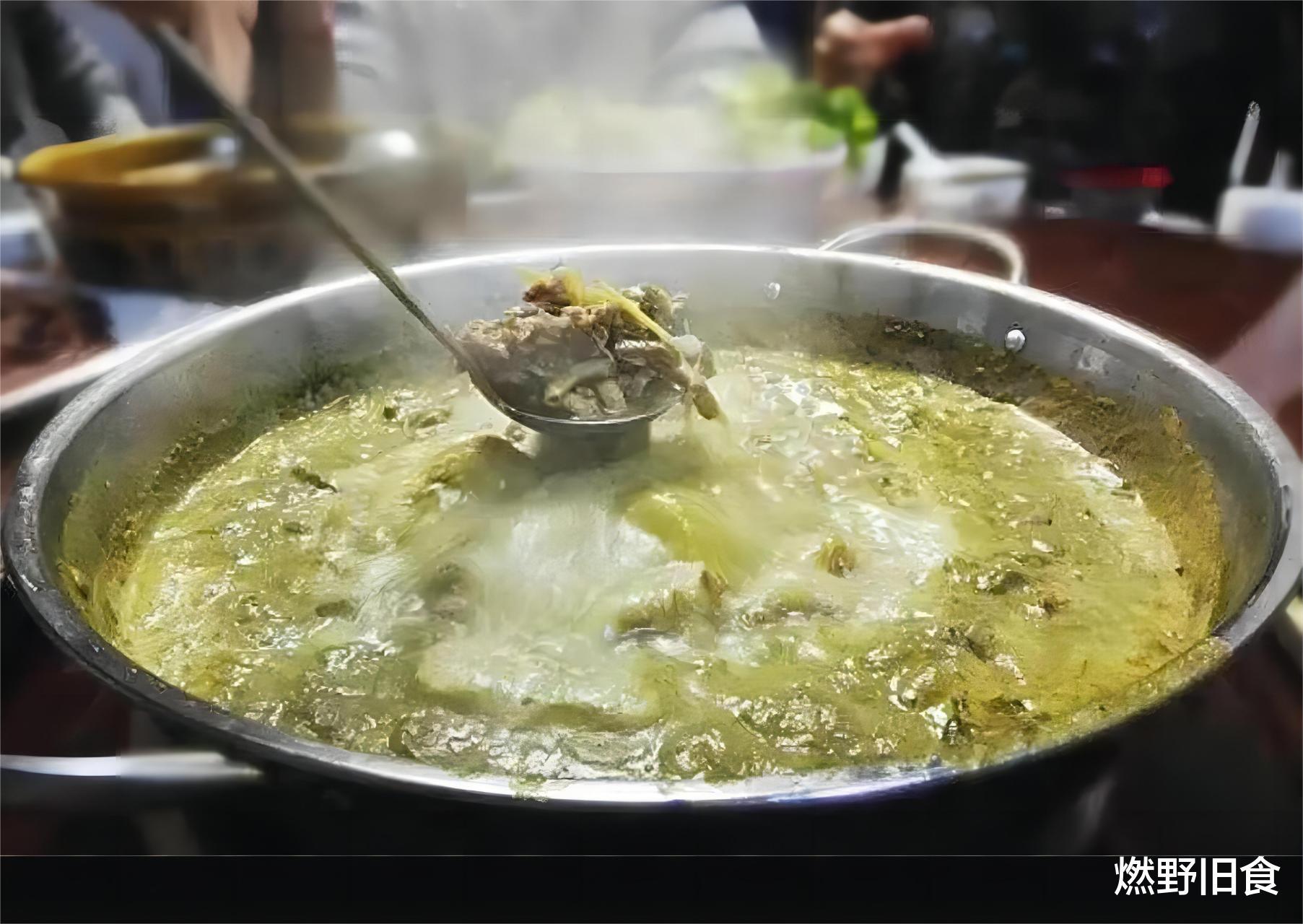 所谓羊瘪,就是从羊的胃中取出半消化的草挤出来的汤,经过处理后,加上胆汁与羊肉等一锅煮沸,煮出来的汤绿黄绿黄的。