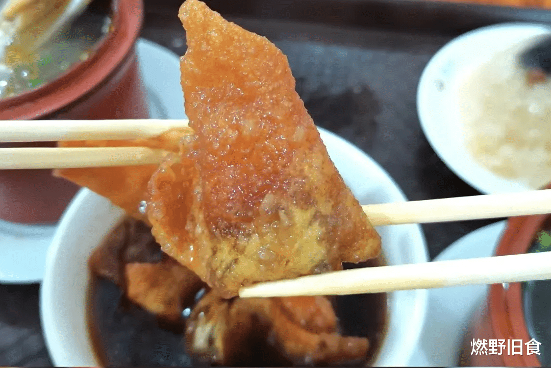 馄饨油炸过,浇上一勺红糖姜水。因为馅不甜,所以吃起来一点不腻。