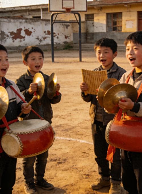 没有专业的乐器,我们就把家里的铅笔盒搜罗过来,用筷子当鼓槌。“哒哒哒 —— 当当 ——” 甲同学敲着铅笔盒起头,乙同学的小锣(其实是个搪瓷碗)跟着附和,丙同学的镲用两个铁瓶盖代替,而我,负责压轴的大锣 —— 一个掉了底的铜盆。虽然道具简陋,可我们练得格外认真,放学后的教室里,总能传出此起彼伏的敲击声和朗朗的台词声。