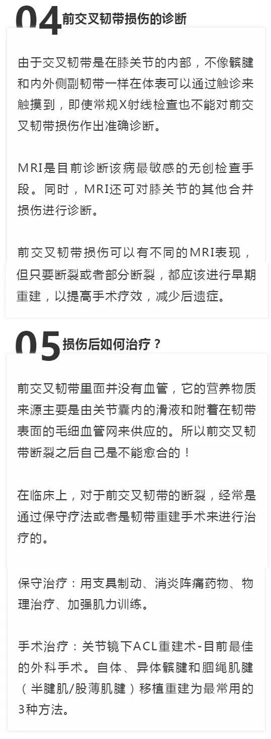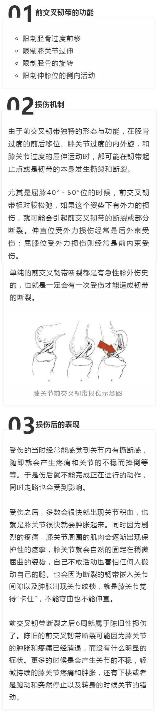 在膝关节腔内前后各有一条韧带,它们有方向上的交叉,分别为前交叉韧带(ACL)和后交叉韧带(PCL),其主要功能就是防止胫骨的前后错动及膝关节在旋转时的不稳。它们在维持膝关节的稳定性方面的作用至关重要。