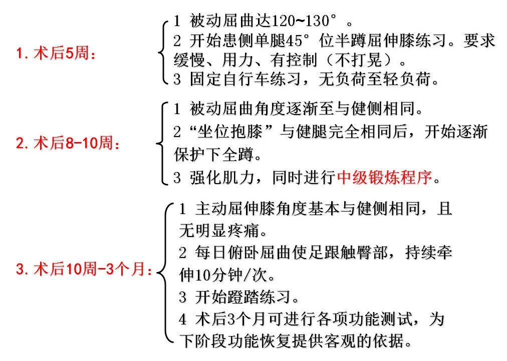 目的:全面恢复日常生活各项活动,强化肌力及关节稳定,逐渐恢复运动。