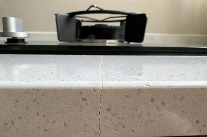 要知道,石英石台面,由于受到质量差、安装工艺不规范、柜体沉降、环境温差大、受力不均匀等原因,在使用多年后,接缝处会有开裂现象,这是自然现象。