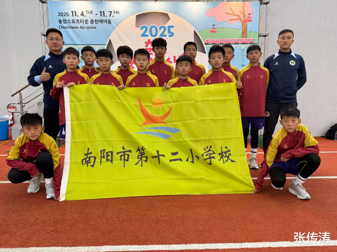 本网南阳11月10日讯(《现代教育报》记者 张传涛 通讯员 刘婷 钱刚)11月3日至8日,在韩国春川市举行的2025国际青少年足球友谊赛上,河南省南阳市U12青少年足球代表队从中国、韩国、蒙古、马来西亚四国的12支精英劲旅中强势突围,以卓越表现勇夺季军,为南阳青少年足球发展史书写辉煌篇章。