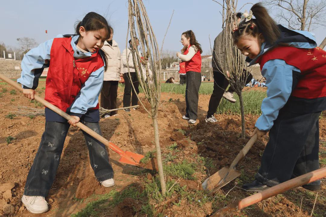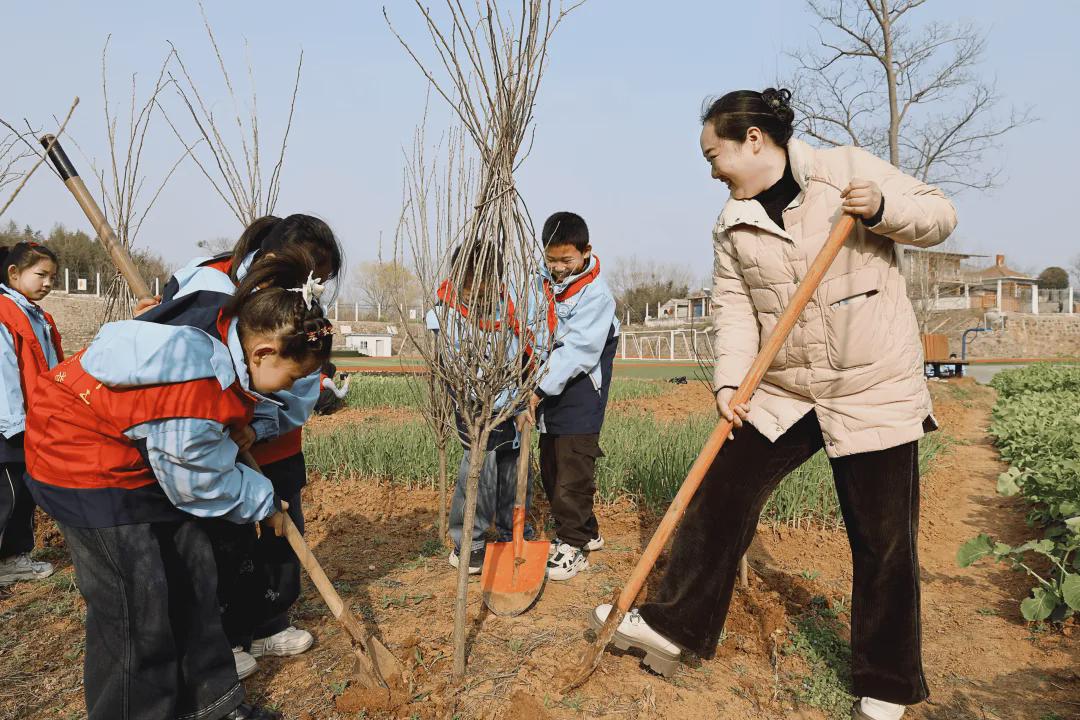 汗水滴落田间,浸润新翻的泥土,一株株充满生机的小树苗,在童心的守护与党员教师的初心陪伴下,轻轻舒展嫩绿的枝叶,仿佛在回应这世间最温柔的照拂。师生们亲手栽种的不仅是树苗,更是绿色的梦想与春天的希望,正如大家期待的那样,来年这里将长出“会呼吸的课堂”,让孩子们在劳动中亲近自然,在泥土里读懂生长的意义,用行动诠释对地球的热爱。