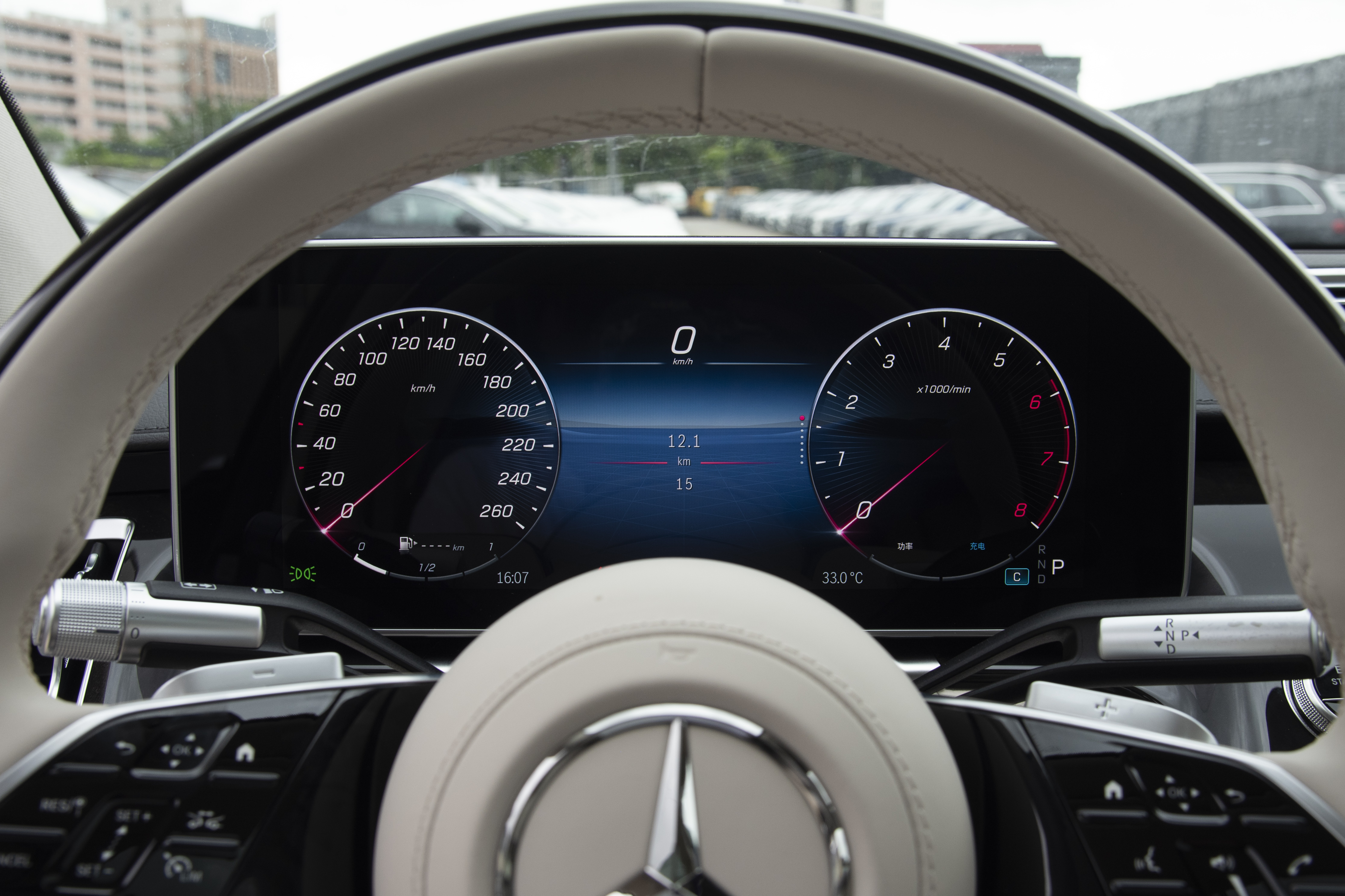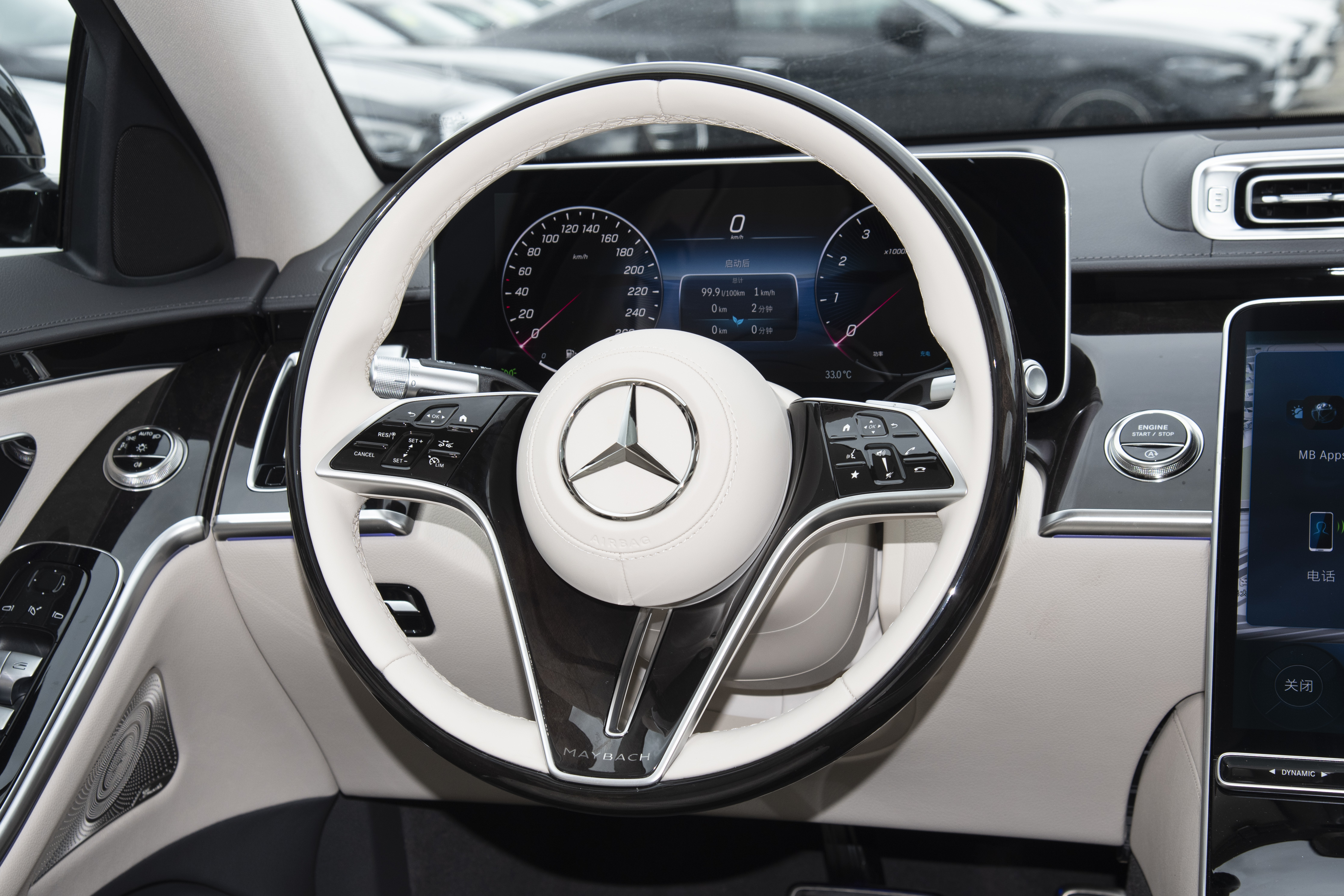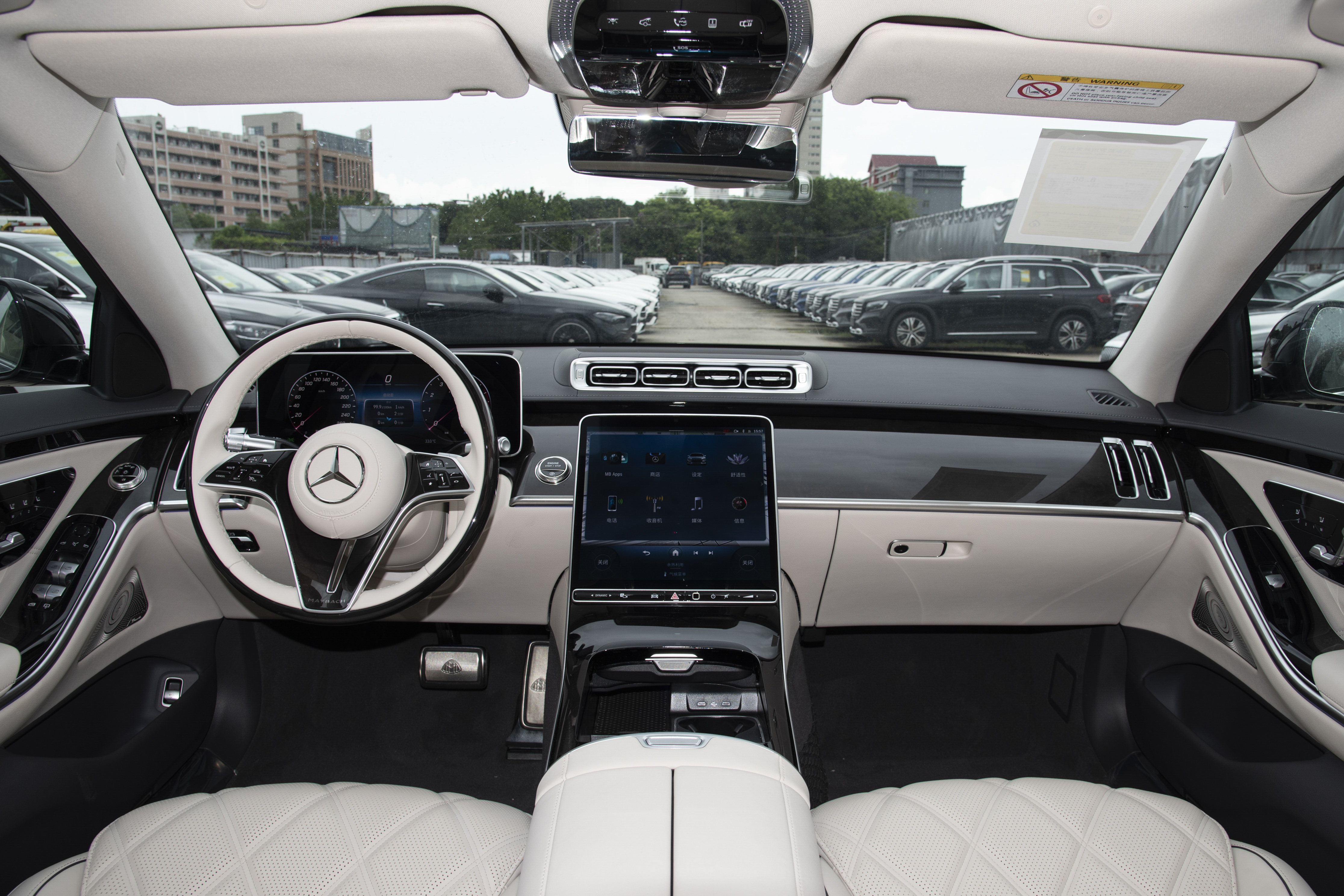 2026款迈巴赫S 480 4MATIC车型的内饰设计同样没有任何调整,继续采用12.3英寸全液晶仪表、HUD平视显示系统以及纵置的12.8英寸OLED中控屏,搭载MBUX智能人机交互系统实景穿越导航、MBUX语音助理、智能手机互联系统等功能。