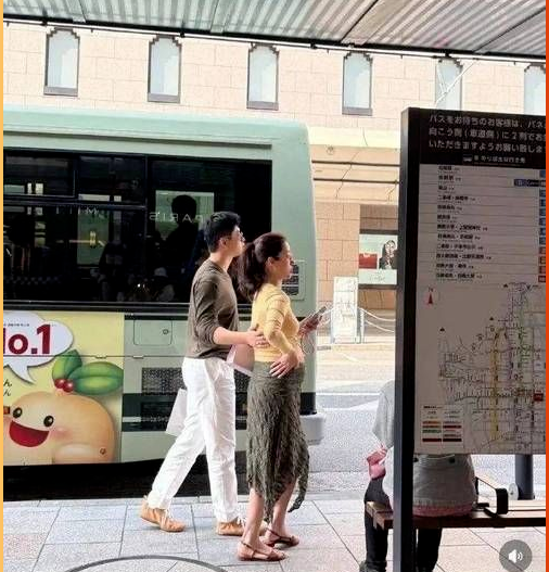 4月17日 日本京都街头。杨采钰和新男友被偶遇。她穿着黄色薄毛衫和淡绿色裙子 孕肚已经很明显。男人一路小心呵护 眼神里满是宠溺。