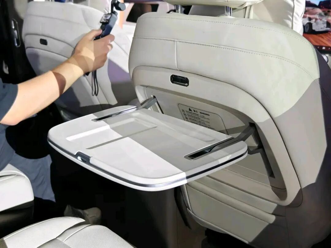 后排也多了很多贴心的设计,比如小桌板,还可选配很多的配件,比如按摩仪。