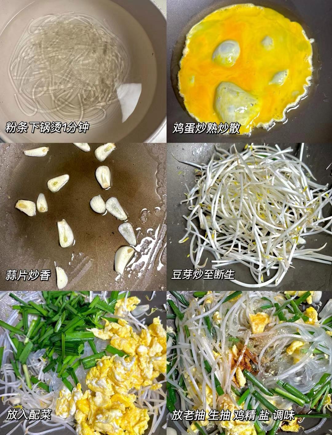 锅中留少许底油,放入蒜片炒香,加入豆芽翻炒至断生;