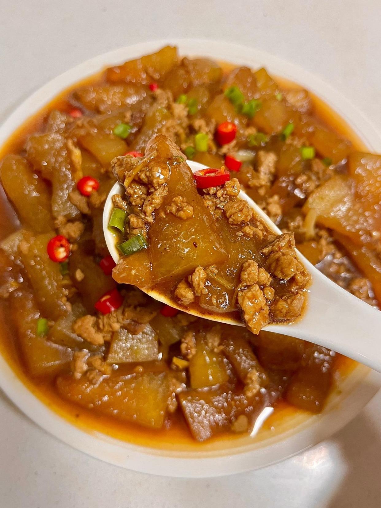 红烧冬瓜清淡可口,冬瓜吸满红烧酱汁,入口鲜嫩,清爽不腻,是超实用的下饭菜。