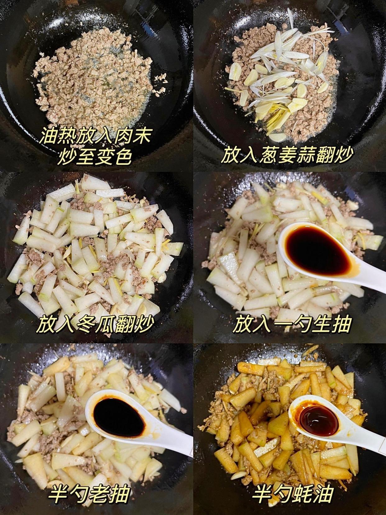 放入冬瓜块翻炒,加入适量生抽、半勺老抽和半勺蚝油;