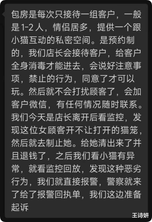 在8月6号,猫咖老板直接找到虐猫女单位,目前女子的供职单位,想必是已经知道她的虐猫行为。