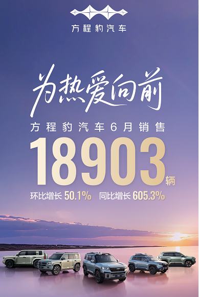 在如今汽车市场的激烈竞争态势之下,比亚迪旗下个性化品牌方程豹汽车,6月销量呈现强劲增长态势,全月销量18903,再创历史销量新高,实现品牌势能的快速提升,成为了成长速度最快、发展态势最好的新势力品牌。