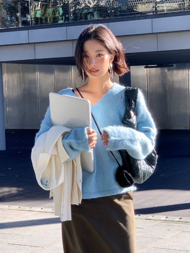 在温暖阳光的沐浴下,选用马海毛毛衣那细腻而丰富的毛绒质感,能够尤为出色地营造出梦幻般的氛围感。