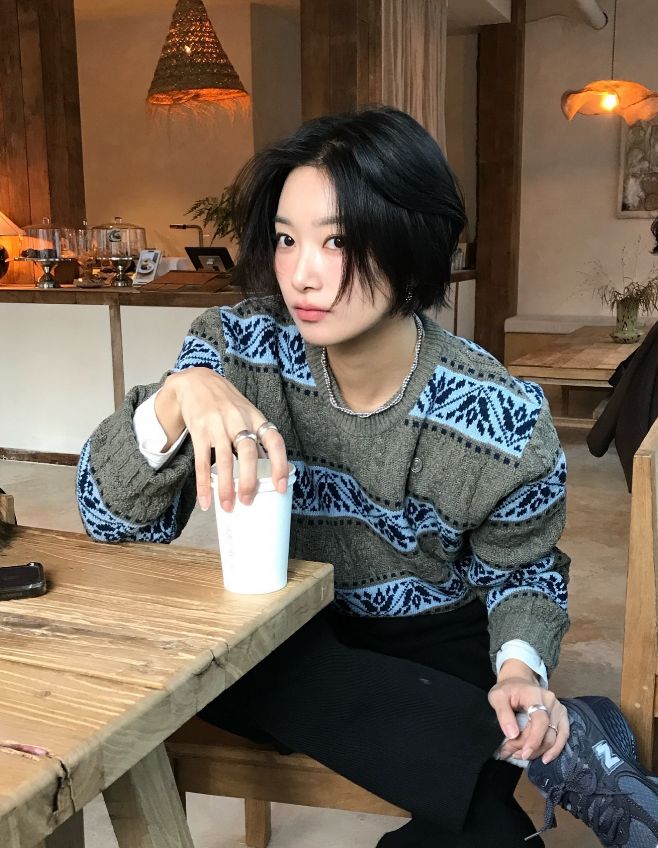 短发配高领毛衣,既干练又不失柔美,恰到好处地勾勒出女性的知性之美。