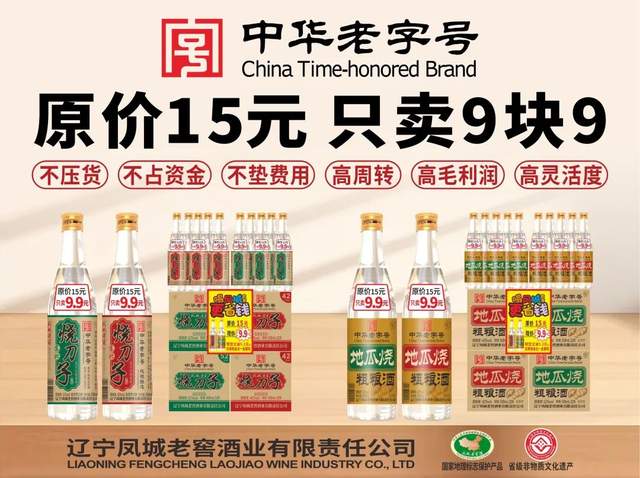 2025年,凤城老窖更是紧抓市场需求,推出烧刀子/地瓜烧系列白酒,酒质均优于国家标准,凭借同等价格比品质,同等品质比品牌、同等品牌比品类优势,堪称国民餐桌上的优质口粮酒,具备持久的市场竞争力,深受广大消费者的青睐与好评。资料显示,凤城老窖烧刀子/地瓜烧系列白酒,为了回馈市场消费者,帮助经销商快速快速地打造样板市场,实现终端热销,特推出优惠政策,原定价15元现只卖9块9,产品集结品牌信誉、坚持纯粮固态发酵工艺,且价格低至10元以下,无疑是渠道引流的爆品。9块9 的低价让白酒放下了高攀不起的身段,消费者试错成本低,消费者更易购买产品,从而增大酒类需求,带动经销商整体销量。