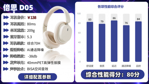 【蓝牙5.3】【优质蛋白皮】【BISA空间音效】【Ai通话降噪】【80ms延时】【70小时续航】