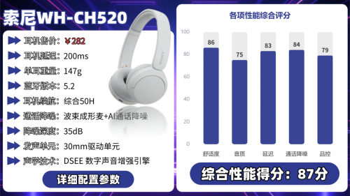 【蓝牙5.2】【合成皮革与泡棉材料】【DSEE™ 数字音质提升技术】【波束成形麦+AI通话降噪】【/】【50小时续航】