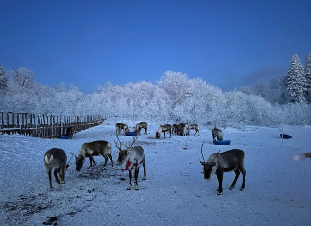 🌲老里克湖雪岭探险:感受林海雪原的魅力,徒步路线需要消耗一定的体力,可体验雪地摩托、喂麋鹿,可在村外游柜台预订。