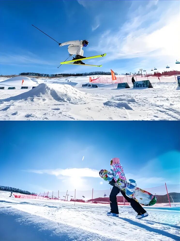 毗邻华美胜地雪场(原鲁能),4条初级道 + 4条中级道,3条魔毯 + 2条索道,地形公园加持,雪道独立少交叉,非常适合新手和亲子家庭。一价全包含双板(4岁 +)/单板(8岁 +)团体课 + 缆车通行证,专属滑雪大厅免排队,G.O专业教练带队教学,安全又有趣。