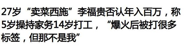 红星新闻---27岁“卖菜西施”李福贵否认年入百万,称5岁操持家务14岁打工,“爆火后被打很多标签,但那不是我”