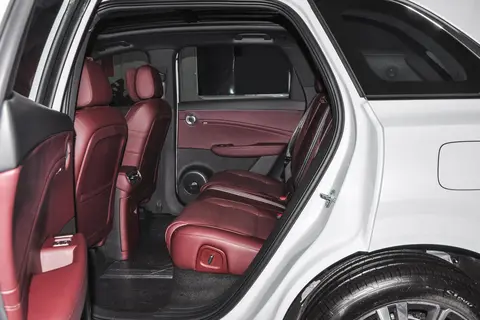 先看座舱空间,大五座布局让前后排乘客都能享受“舒展坐姿”。前排座椅支持多向电动调节,身高185cm的体验者坐进主驾,调整好坐姿后,头部还有一拳半的距离;后排腿部空间更是达到两拳以上,就算翘二郎腿也完全不局促。