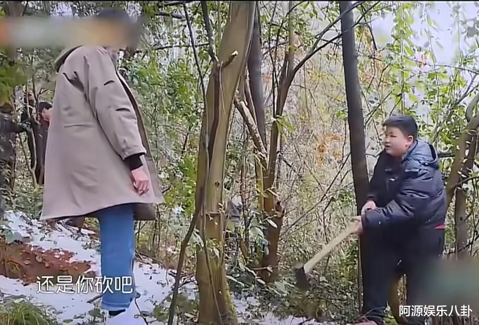 第二天大家一起上山砍柴,其他人拼命干活,唯独小果双手插兜,像来巡视工作的,还一个劲嫌弃大哥砍的慢,听到这话的大哥直接怒了,对他吼道:“你叫什么叫,你过来砍砍试试。”直接把斧头给了小果,结果小果挥了两下斧头,这才发现这活也不是那么好干的。