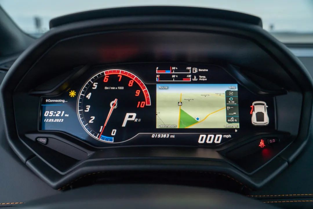 碳铝混合底盘融合系统化轻量化设计与碳纤维技术,实现1,422公斤干重和2.33公斤/马力的功重比。全新5.2升V10发动机在8,250转/分时输出610马力,6,500转/分时爆发560牛米扭矩。创新的IDS燃油直喷技术相比Gallardo发动机,在提升性能的同时降低油耗与排放。其最高时速突破325公里/小时,0-100公里/小时的加速时间为3.2秒,0-200公里/小时仅需9.9秒。