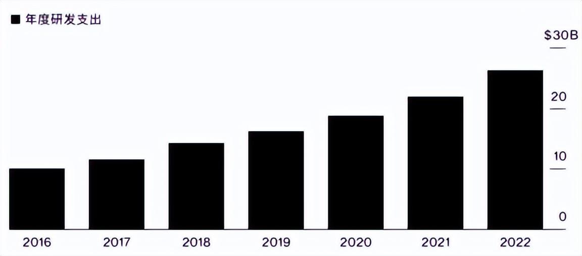 苹果历年不断攀升的研发投入
