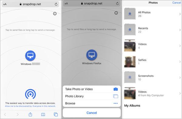 方法6:如何使用Snapdrop将大型视频文件从iPhone发送到计算机Snapdrop 是一款免费应用,其功能类似于Mac上的 AirDrop。使用 Snapdrop,您可以跨平台传输照片、视频和其他文件。 (适用于Windows AirDrop 替代品。)